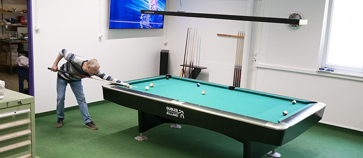 Dans cette entreprise de décolletage de haute précision qui travaille principalement pour le secteur de l’horlogerie, le directeur a compris que pour bien travailler, il faut savoir se détendre. Billard, fauteuil de massage, coin canapés et équipement de karaoké permettent de faire baisser le stress, augmenter le bien-être et améliorer la productivité et la santé des salariés. Cet aménagement reste un espace de détente créateur de liens sociaux entre l’entreprise et les employés et ses clients et fournisseurs.